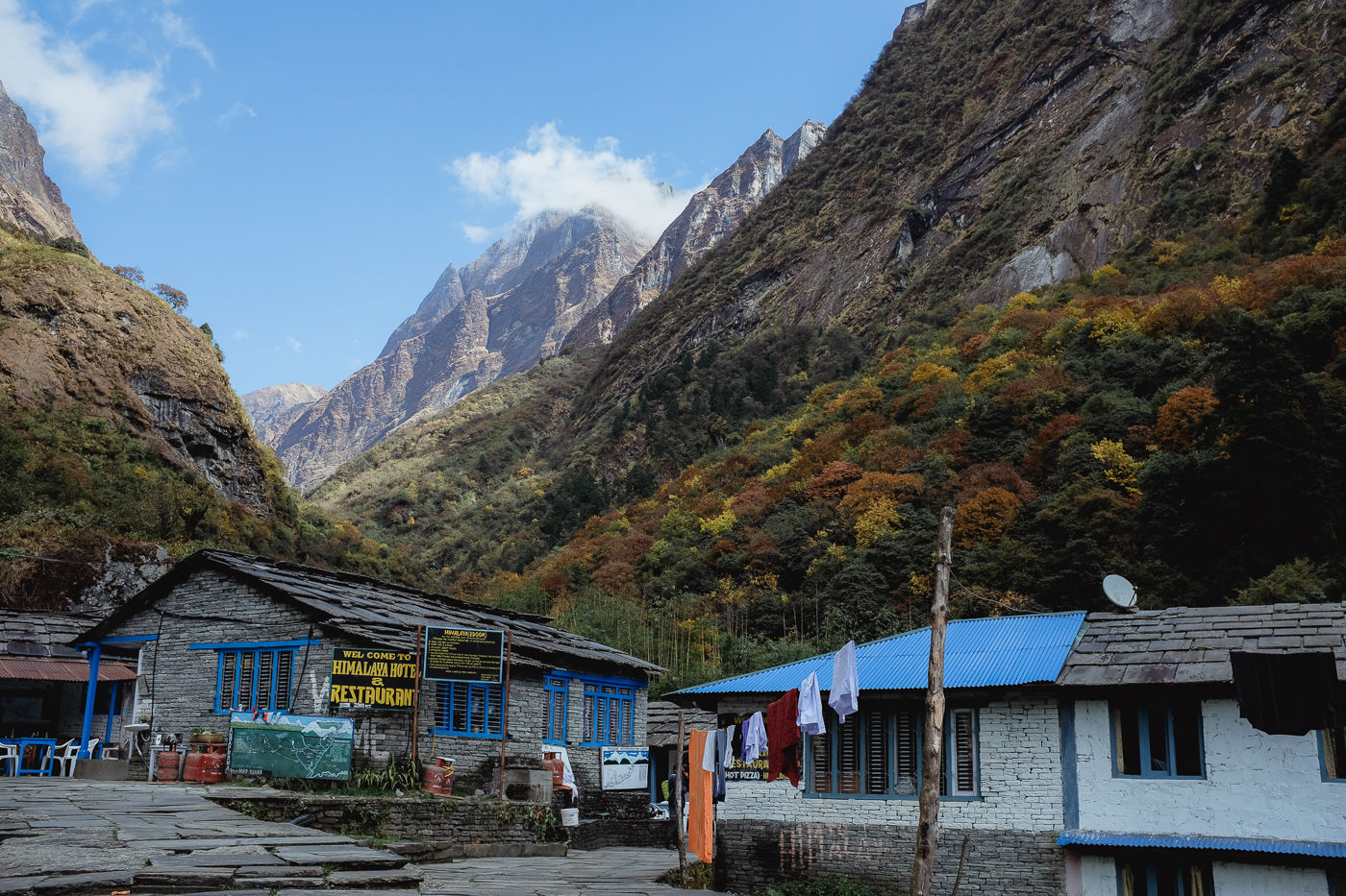 Every tea house in Chomrung has Annapurna massif views. You wake, you open the sliding door to your balcony and there it is. The Annapurna massif, covered in snow. Sometimes clouds. Sometimes clear (only if you're in luck).