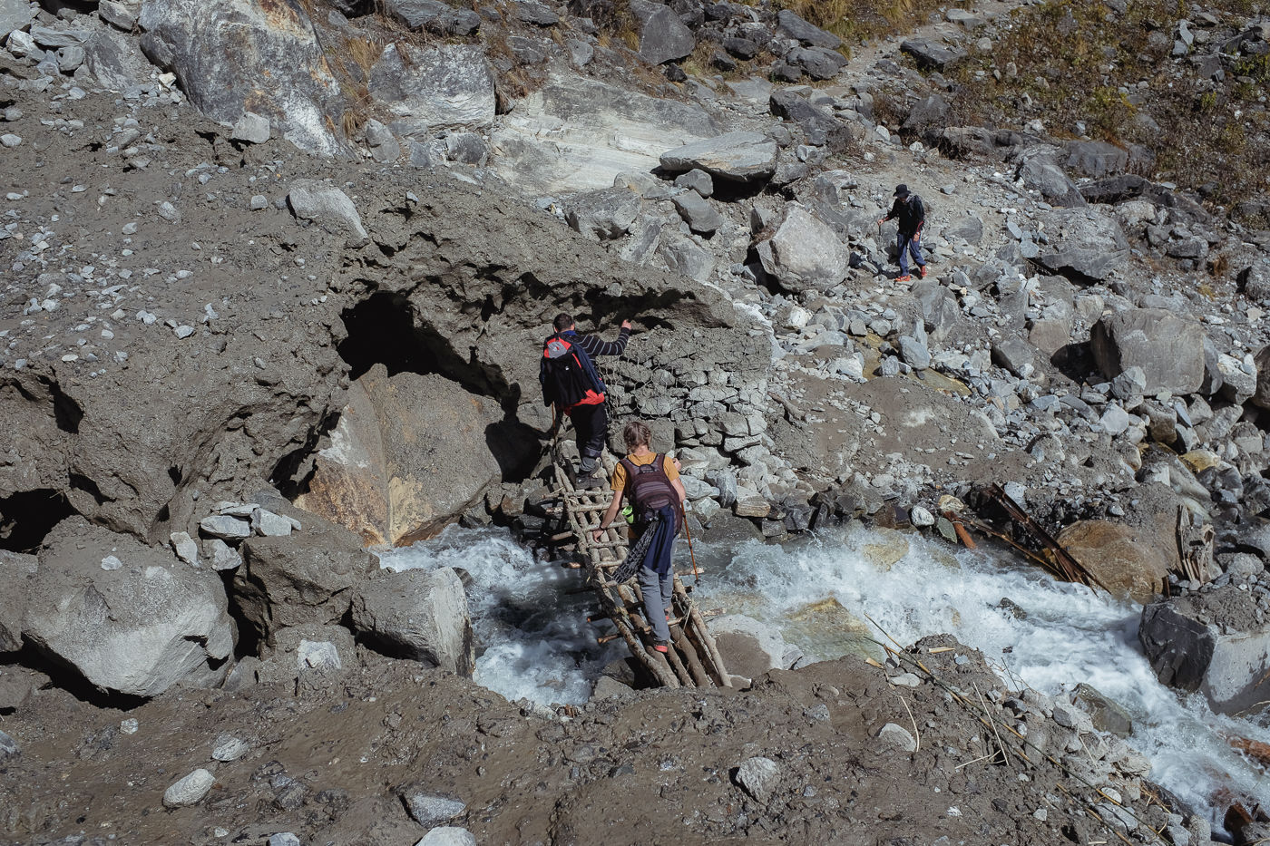 To Machapuchare Base Camp, it started with a gradual ascent. Few minutes into the walk and we were encountering steepest ascents so far. The terrain on this stretch is marked with small snow bridges that need to be crossed which can be scary at times.